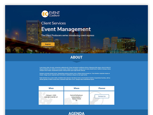 This type of website is used for simpler events, like seminars or webinars. The purpose is to provide basic information and a place to register. This type of event is one that’s easy to explain. If you can fit all of the information you need on one page, a registration website is for you.