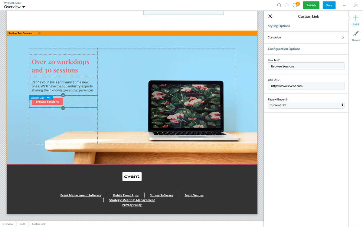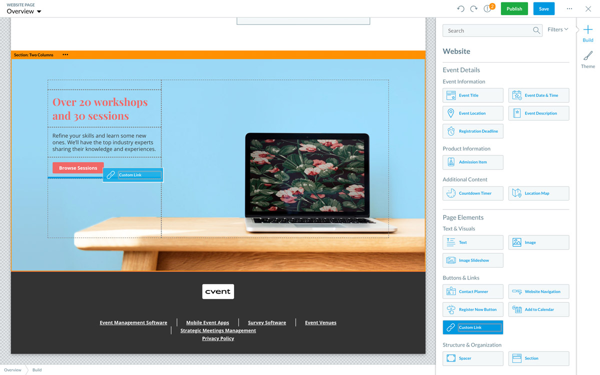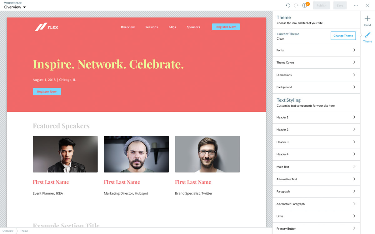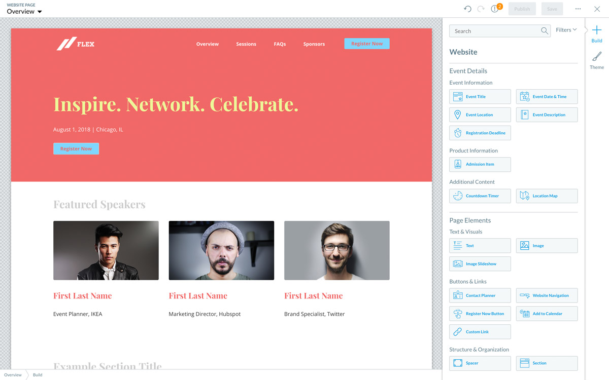Creating a website should be easy. The hardest part should be making the design decisions. Back in the day, you needed to know how to code to create a professional looking website, but not anymore. There are tons of great site builder’s out there, but one that makes it easier than ever is Cvent’s Project Flex, a drag-and-drop site designer built to provide site designers with intuitive, responsive, and flexible registration technology. In the next section, we break down how to build a site using Cvent’s site builder.